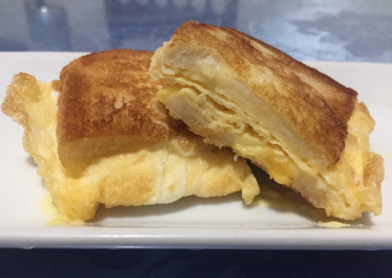 - Fill bread slices with omelette and cheese. Spread outside of sandwich with margarine. Return to skillet; cook 3 min. on each side or until golden brown on both sides.
