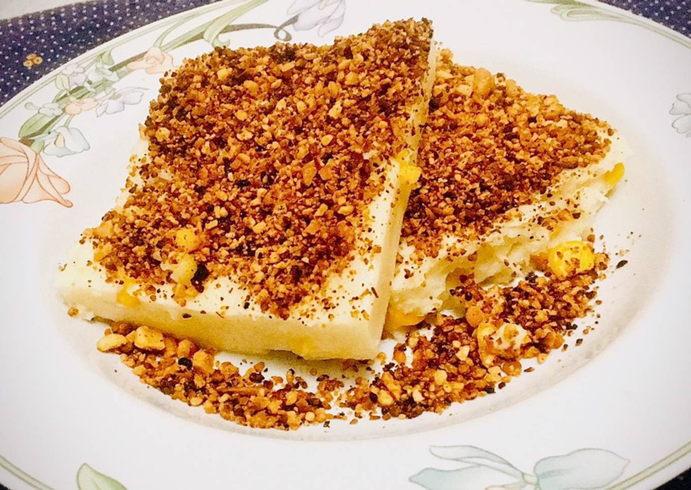 - Garnish with toasted desiccated coconut or toasted nuts & sesame seeds. Square-cut and serve each piece while cold and fresh!