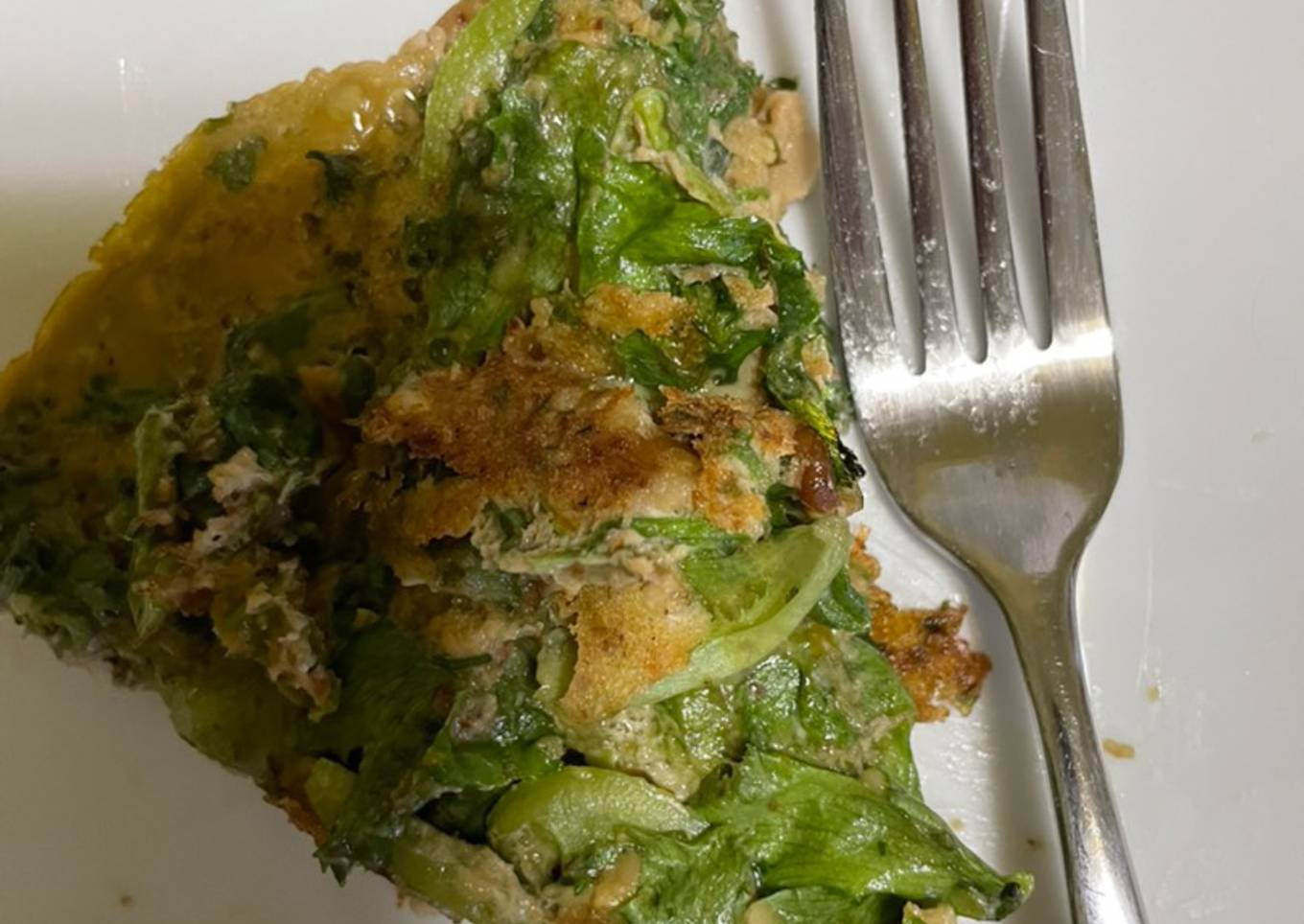 I was inspired by Saina's kookoo on Cookpad but didn't have ingredients to make it, so I threw this together. The nuts in the pesto add a lovely aroma.