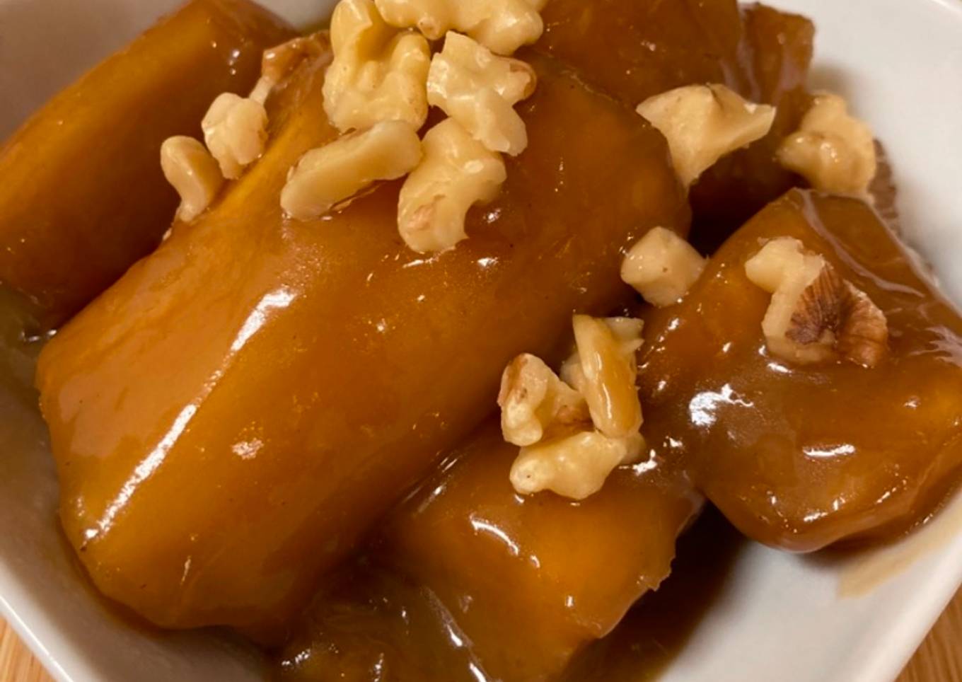 Singkong manis siap dihidangkan ketika cairan berubah caramel.