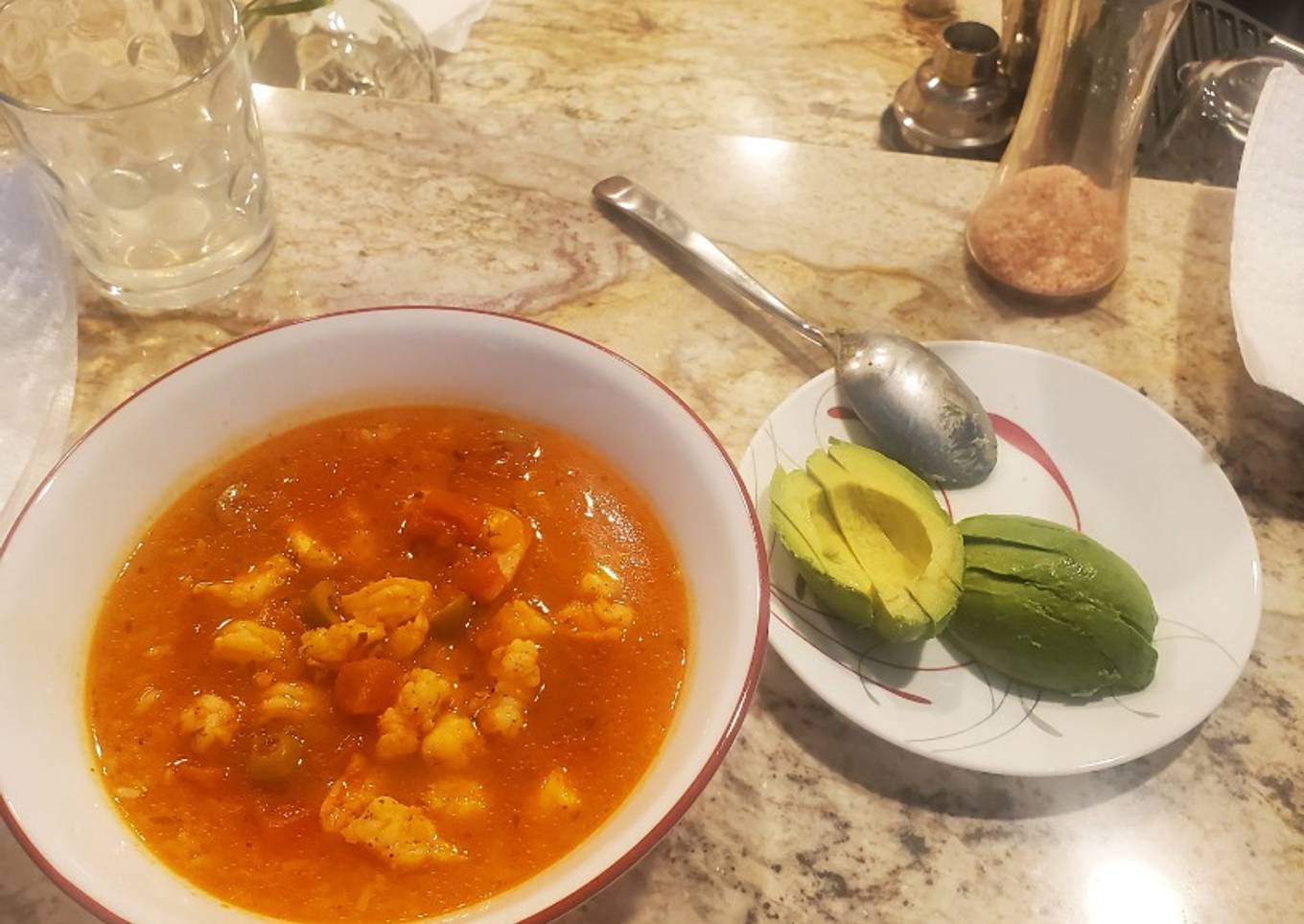 Puerto Rican shrimp soup (for the most part). We tweaked it a bit to our taste.